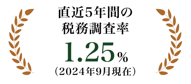 当事務所の直近5年間の税務調査率は1.25%(2024年9月現在)と一般的な税務調査率より低い数値となっています。税務署に指摘を受ける可能性のある事項については、申告書の提出前に十分検討を行っております。