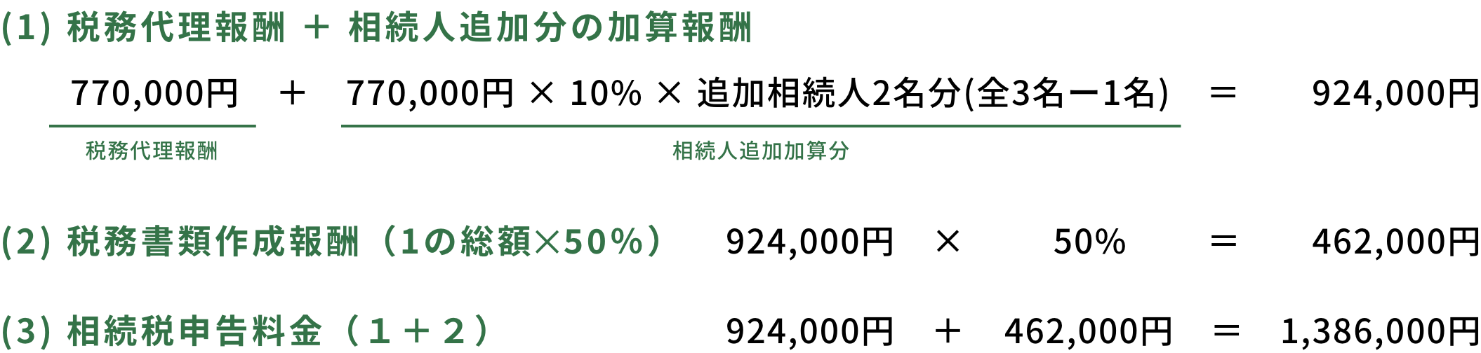 (1) 税務代理報酬 + 相続人追加分の加算報酬