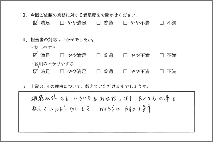 基本的には営業時間内に事務所で対応させていただいておりますが、ご高齢のお客さまや、お仕事等で忙しいお客さまのご要望に合わせて、状況によっては、ご自宅への訪問や夜間・土日祝日の対応も行なっています。